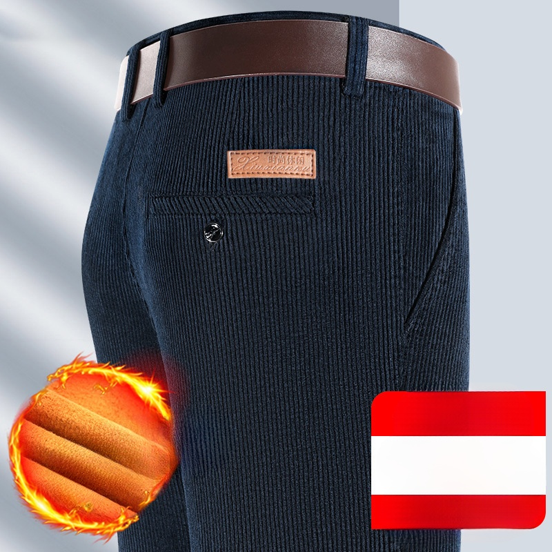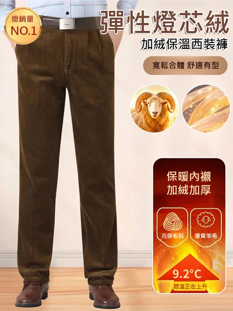 【厚度可選】彈性燈芯絨加絨保溫西裝褲男